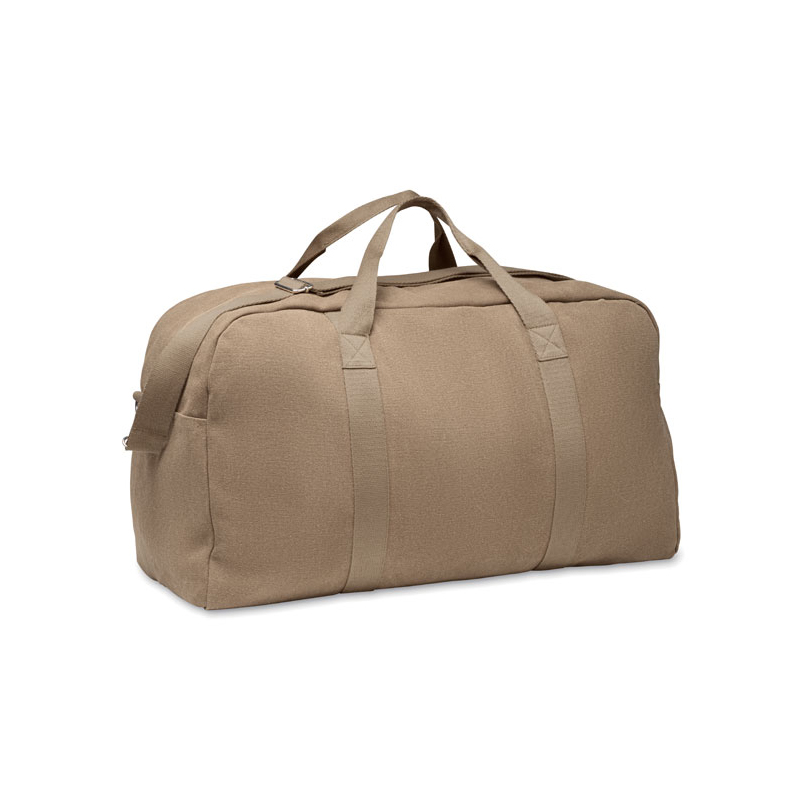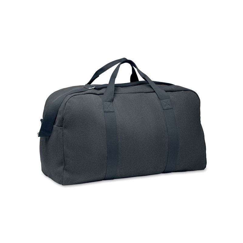 Torba podróżna Duffle wykonana z materiałów pochodzących z recyklingu o gramaturze 450 gr/m² (60% bawełna z recyklingu i 40% poliester z recyklingu) z regulowanym i odpinanym bawełnianym paskiem.