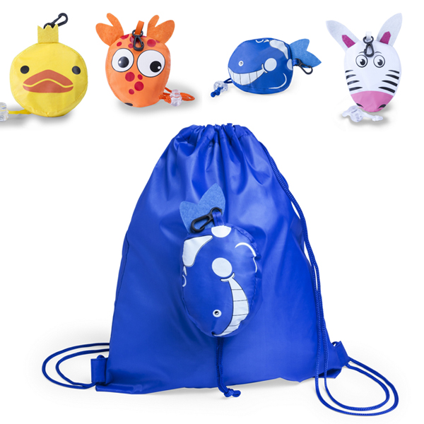 Składany worek ze sznurkiem, pokrowiec w kształcie zwierzątka (02-zebra, 07-żyrafa, 08-kaczka, 11-wieloryb), z karabińczykiem