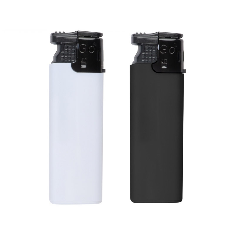 Plastikowa zapalniczka elektryczna z regulacją płomienia. Dostępne kolory: biały i czarny.