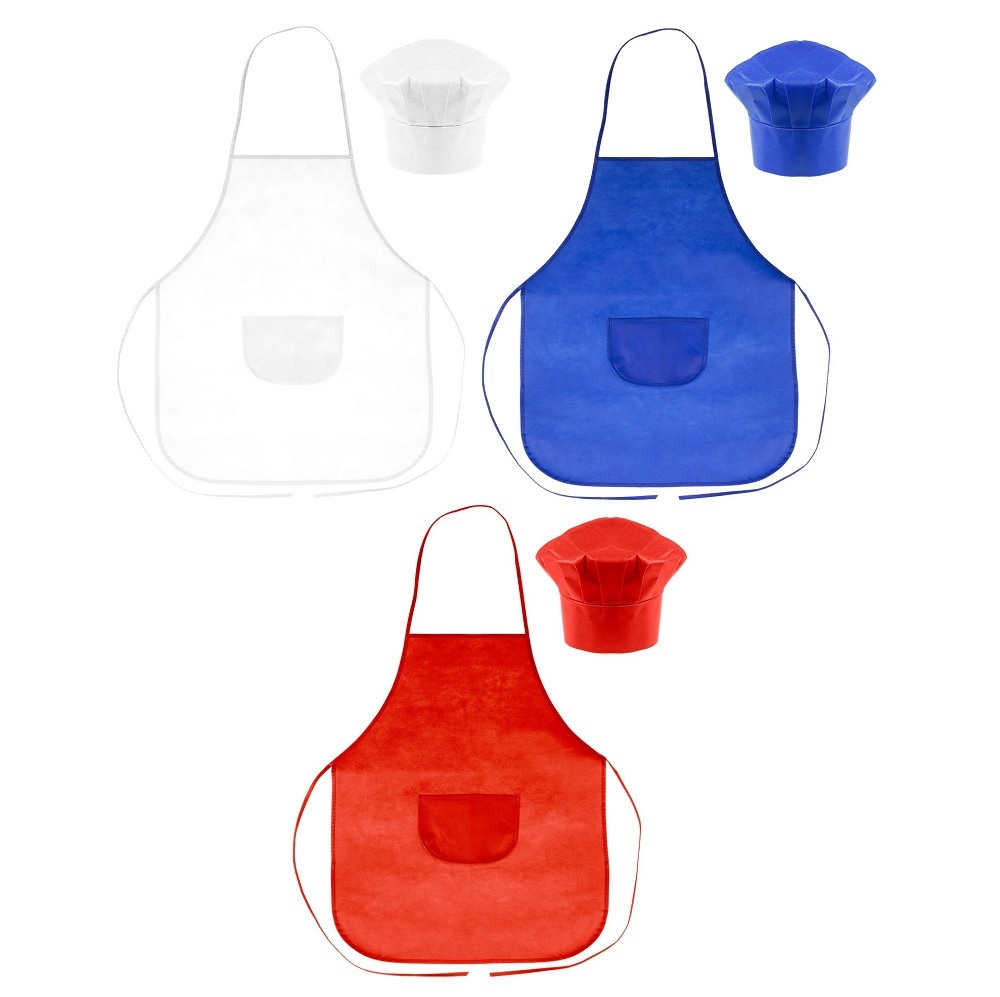 Zestaw małego kucharza, fartuch kuchenny i czapka kucharska w komplecie, zestaw w rozmiarze dziecięcym, produkt wykonany z non-woven 80 g/m²